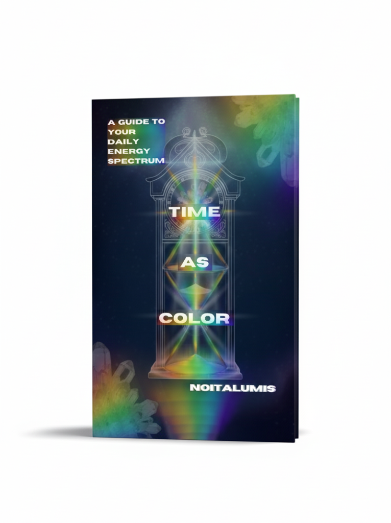 Developed by Noitalumis, the Time As Color framework refracts your 24 hours into a Daily Energy Spectrum. This spectrum is composed of eight distinct timecolors, each aligning a segment of your day with a unique energetic center, musical note, and emotional state.